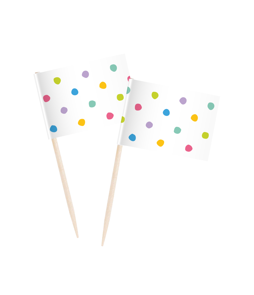 Breng kleur en vrolijkheid naar elk feestje met deze Cocktail picks - Party Dots. De vrolijke prikkertjes zijn perfect voor hapjes, snacks, fruit, mini-gebakjes of om drankjes een feestelijke finishing touch te geven. Dankzij het kleurrijke stippenpatroon sluiten ze naadloos aan op de volledige Party Dots-lijn, waardoor je eenvoudig een harmonieus en feestelijk geheel creëert.