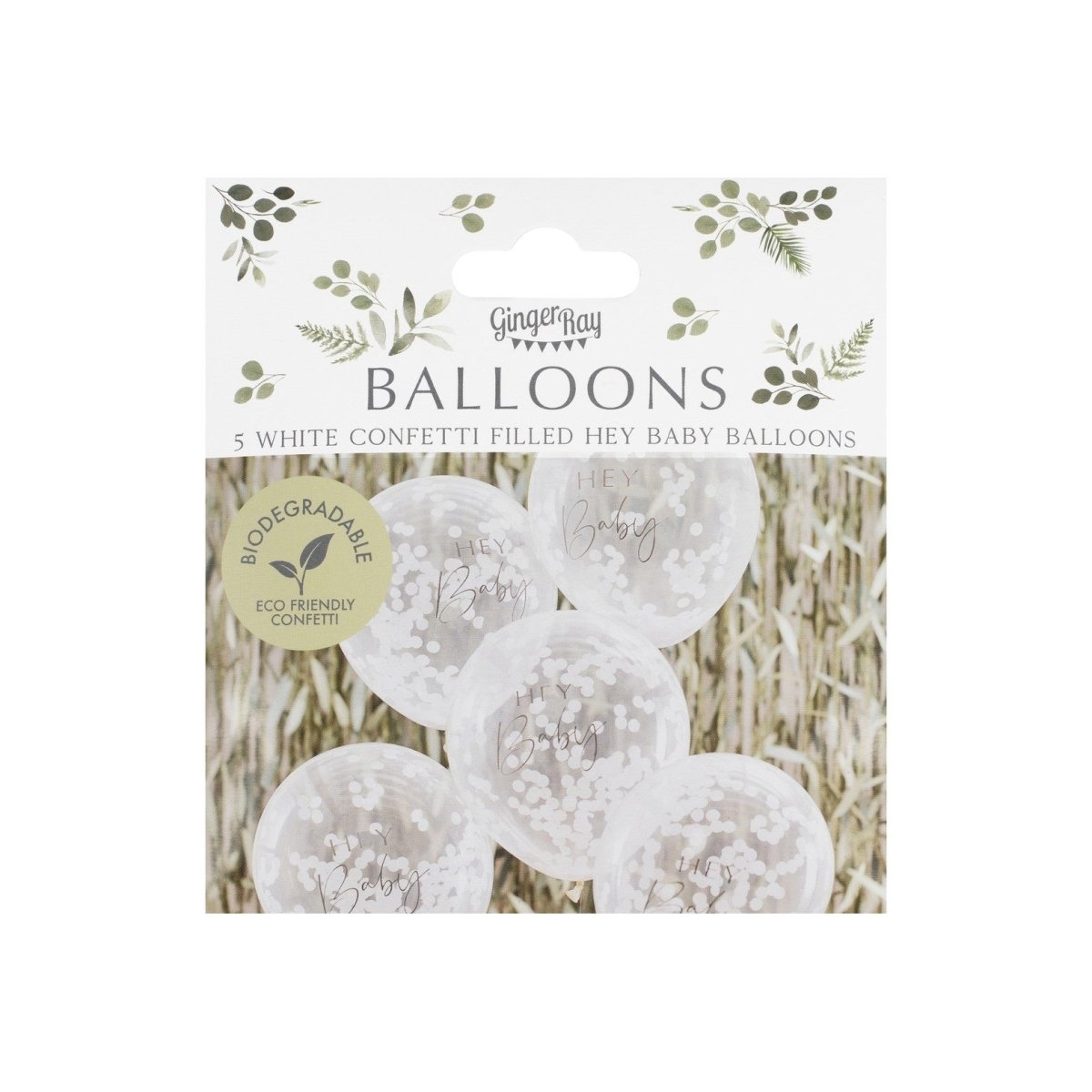 Houd je babyshowerdecoraties eenvoudig met deze minimalistische Hey Babyshower-confettiballonnen. Deze witte confetti-ballonnen passen goed bij elk thema en zijn fantastisch voor een genderneutrale babyshower.