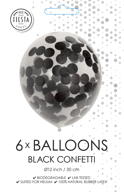 Verpakkingsinhoud: Confetti Ballonnen Zwart 30cm 6st