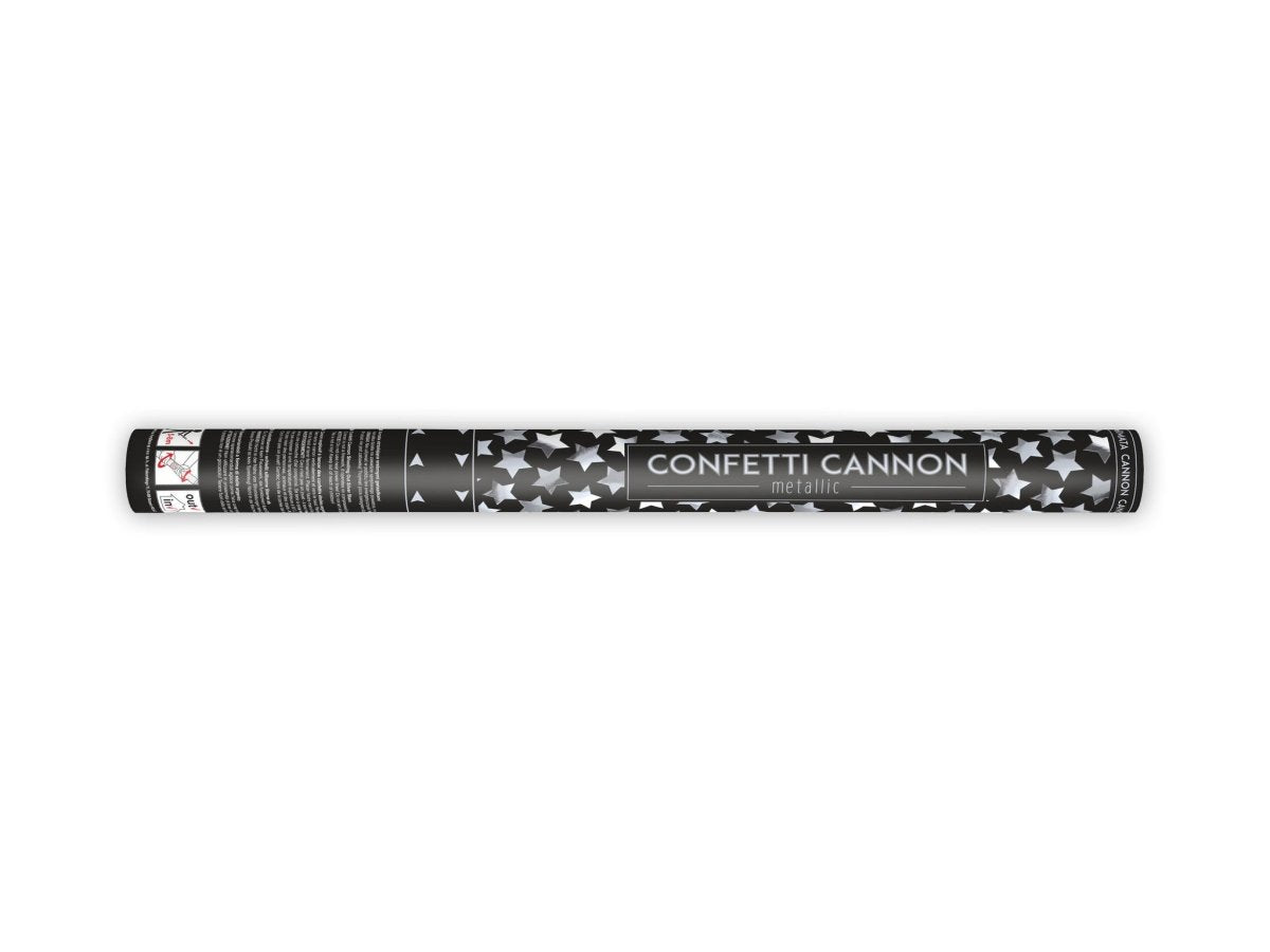Inhoud: Confetti kanon schieten uit metallic sterren, zilver, lengte 60 centimeter.