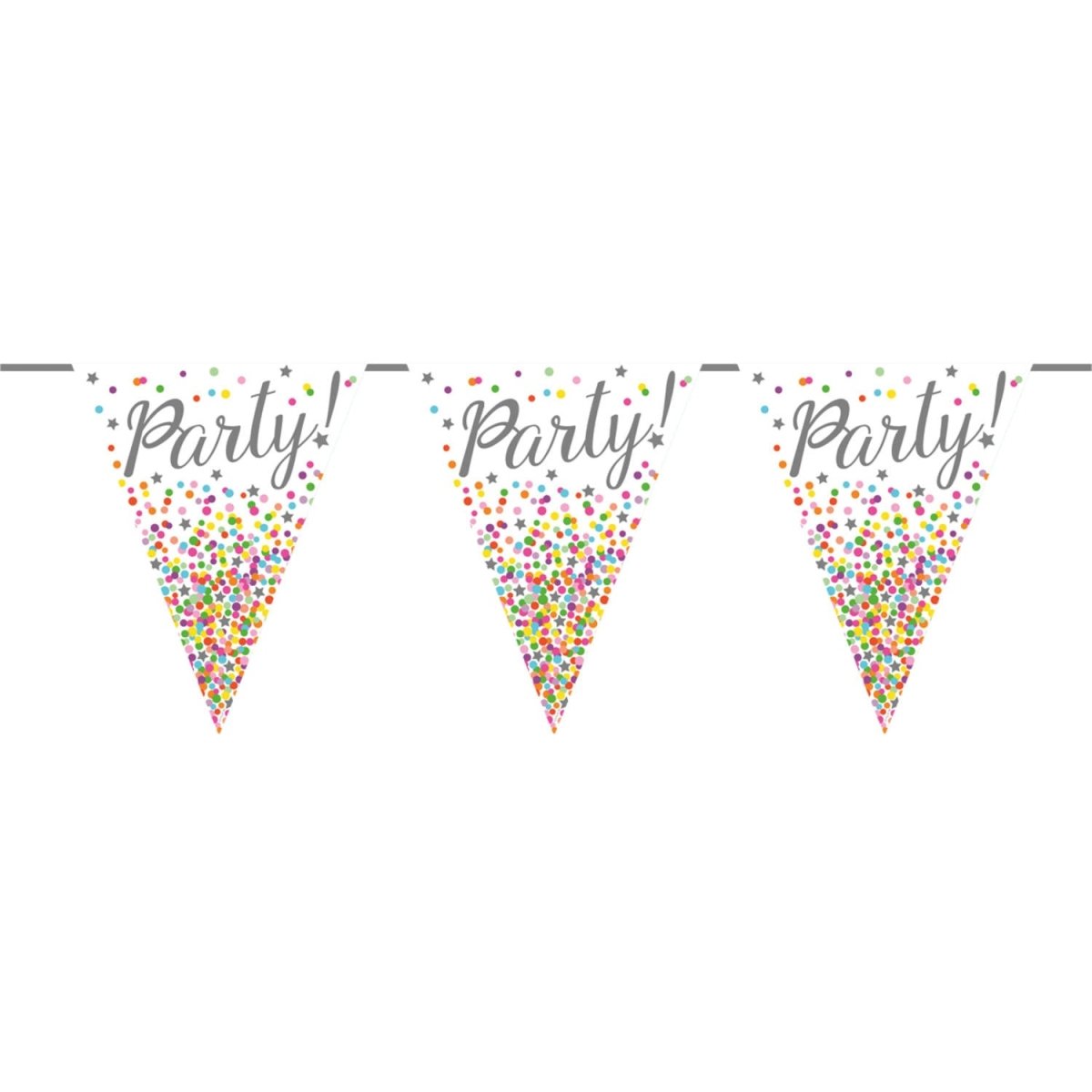 Vlaggenlijn Confetti Party - 6 meter. Inhoud: 1 vlaggenlijn. Kleur: Meerkleurig. Productthema: Confetti Party. Bijvoorbeeld te gebruiken tijdens de volgende feestgelegenheid/feestgelegenheden: verjaardag, kinderfeestje, tienerfeestje. Deze slinger is 6 meter lang. Het artikel is gemaakt van plastic.