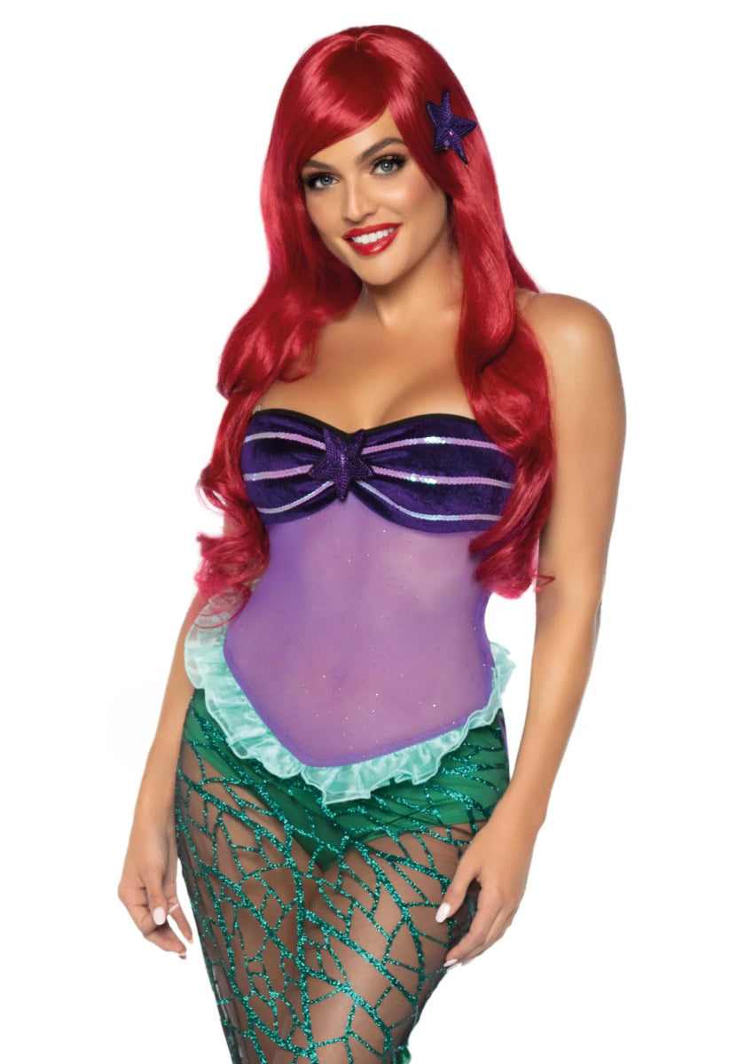 🌟 Combineer met de Leg Avenue lange bordeauxrode pruik voor de ultieme zeemeerminlook