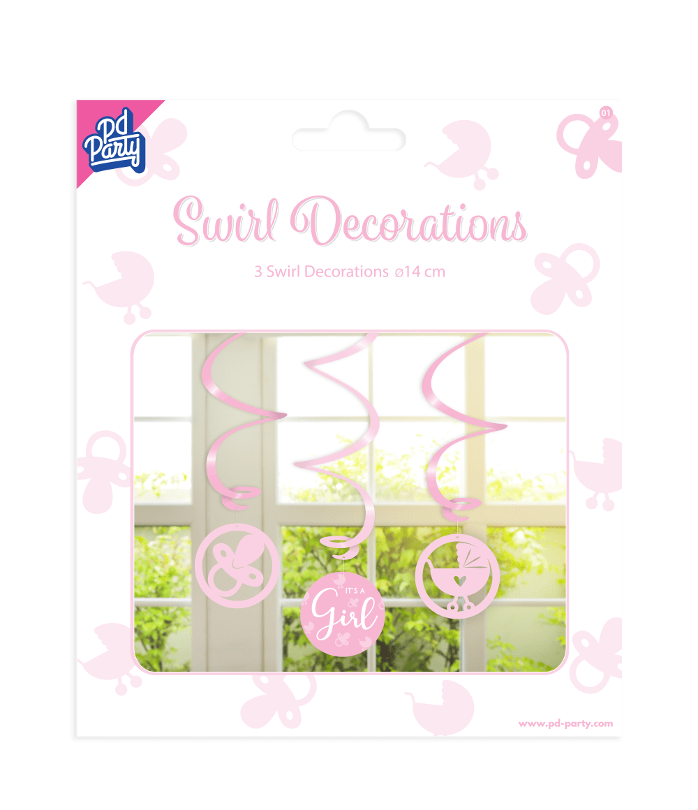 Decoratie Swirl Het Is Een Meisje 30cm 8st
