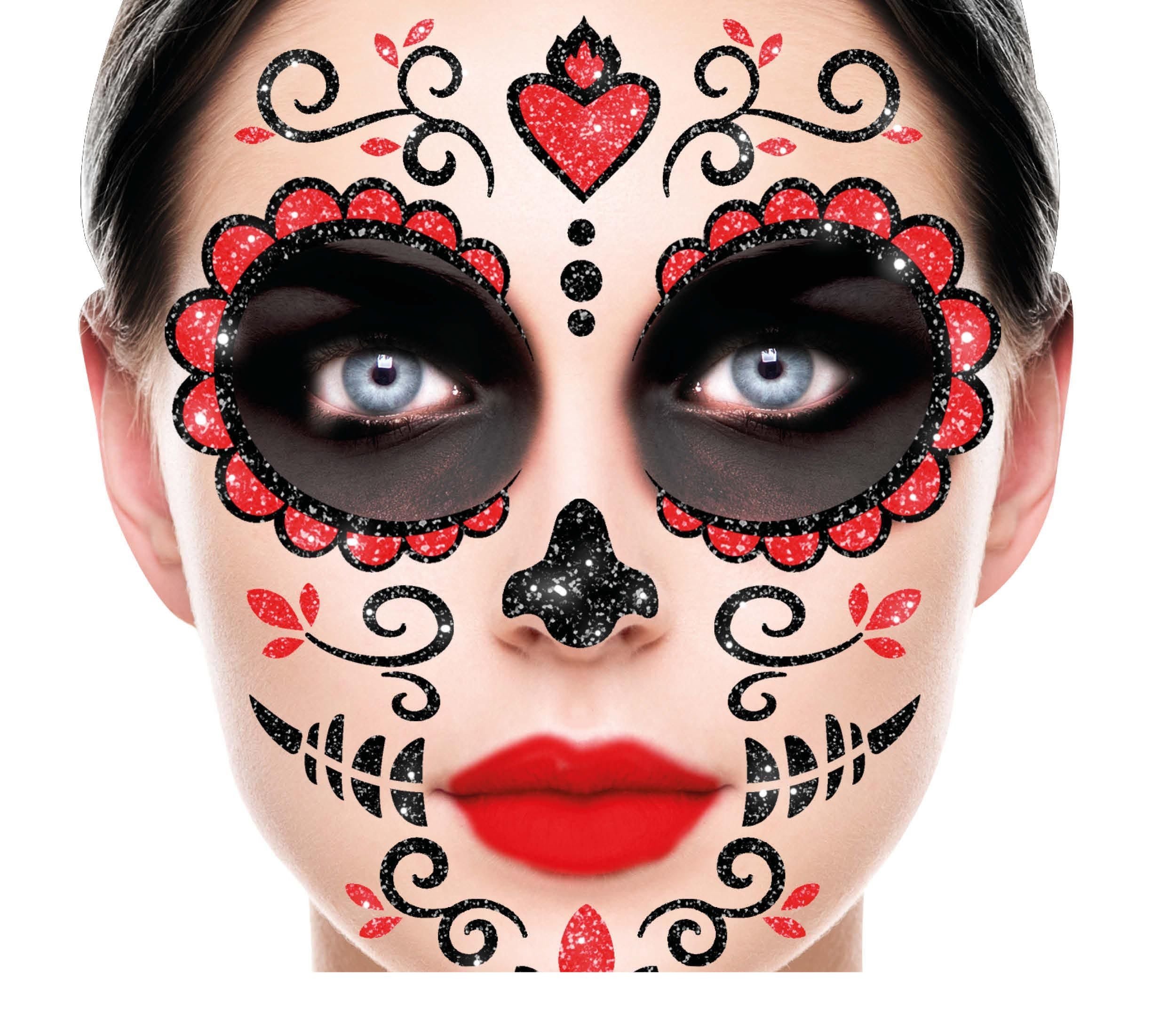 Dia De Los Muertos Gezicht Stickers Glitter 20cm