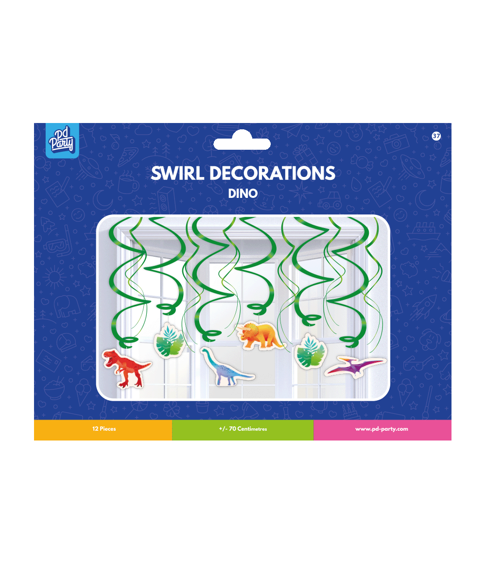 Een kinderfeestje kan niet zonder deze Dino swirl decorations en vormen een unieke combinatie met onze andere Dino feestversiering!