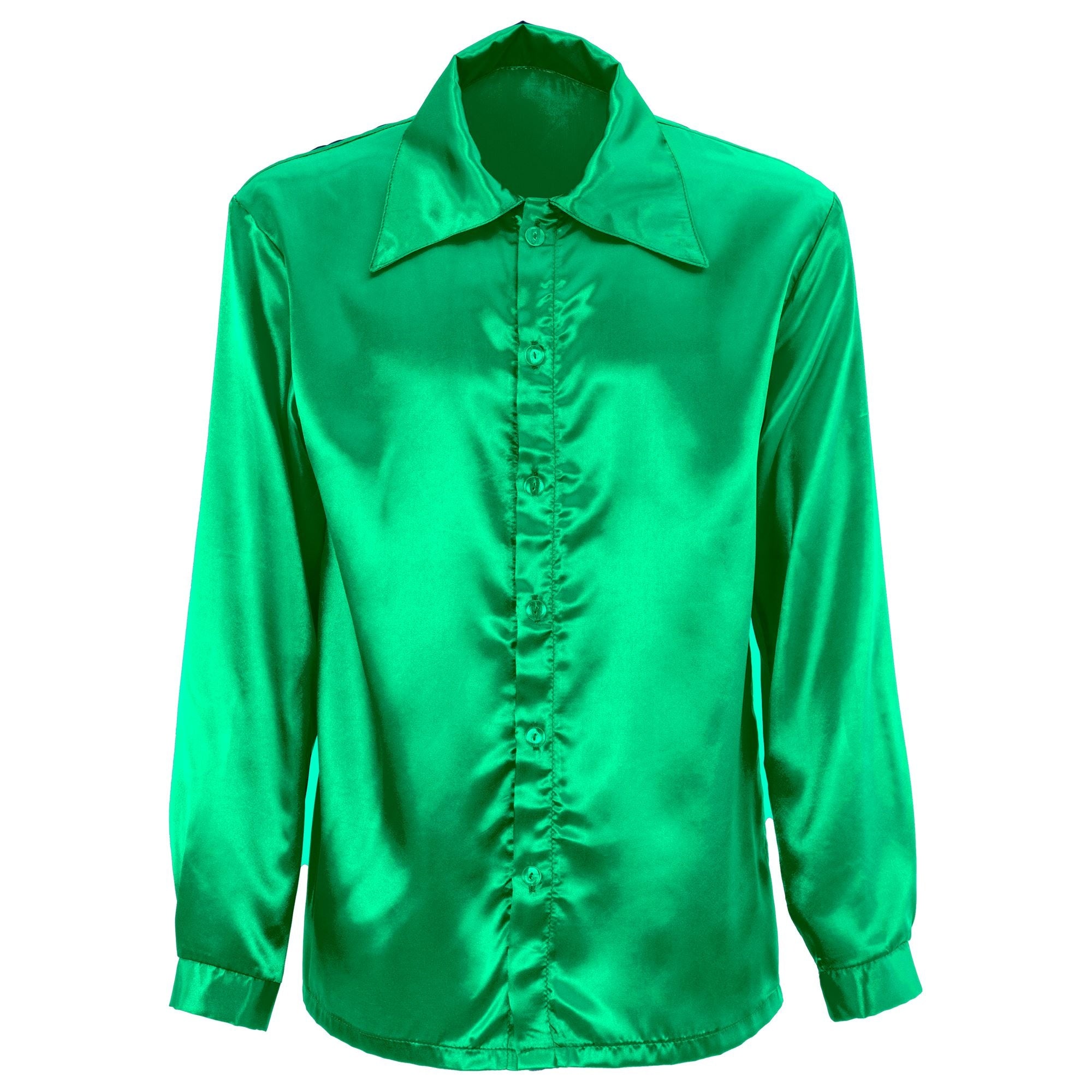 Omschrijving: satijngroen 70s discohemd