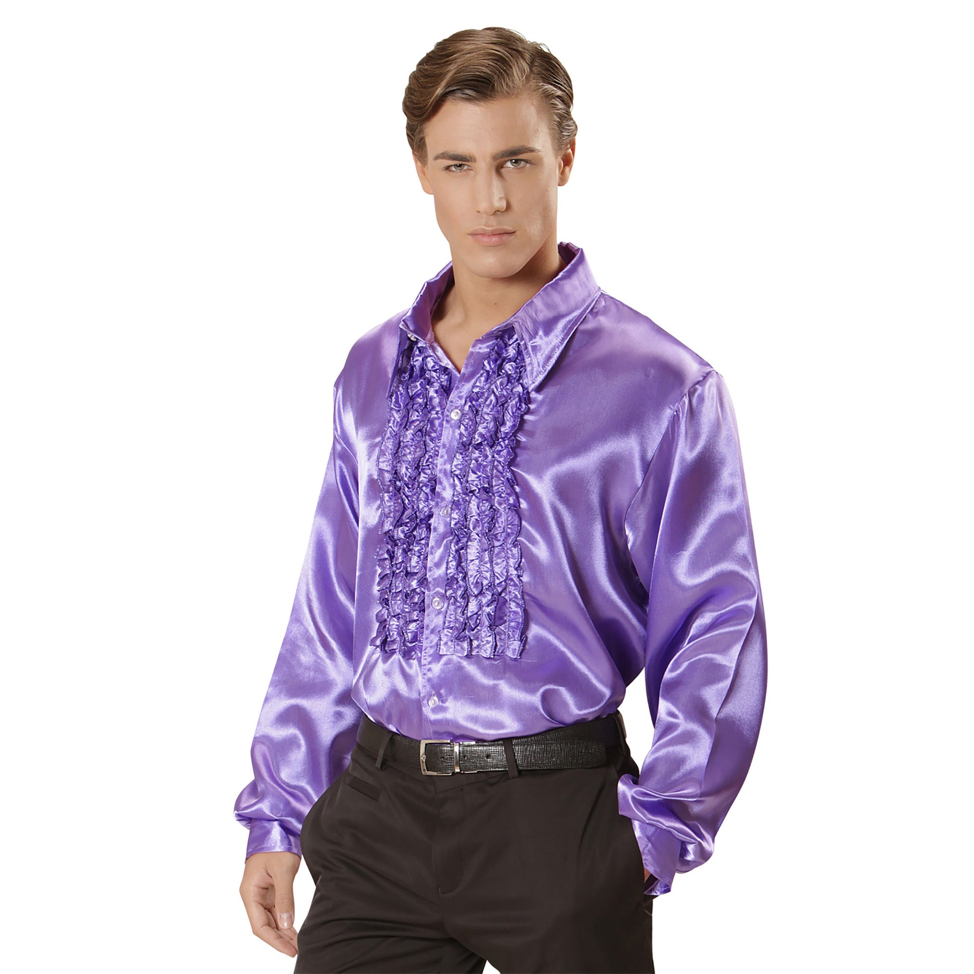Omschrijving: de jaren 70 disco mode paars satijnen rucheshirt