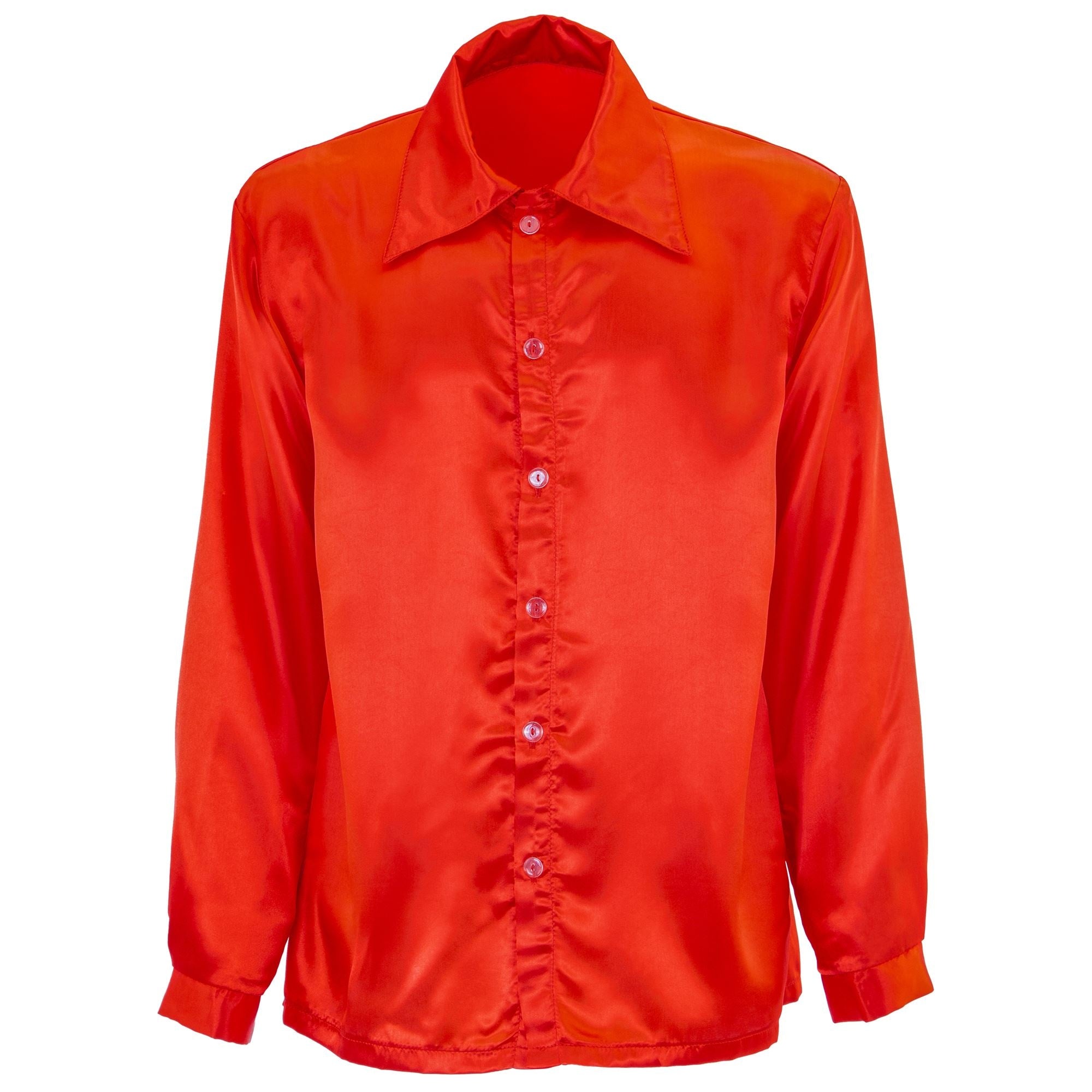 Omschrijving: satijnen rood jaren 70 disco shirt