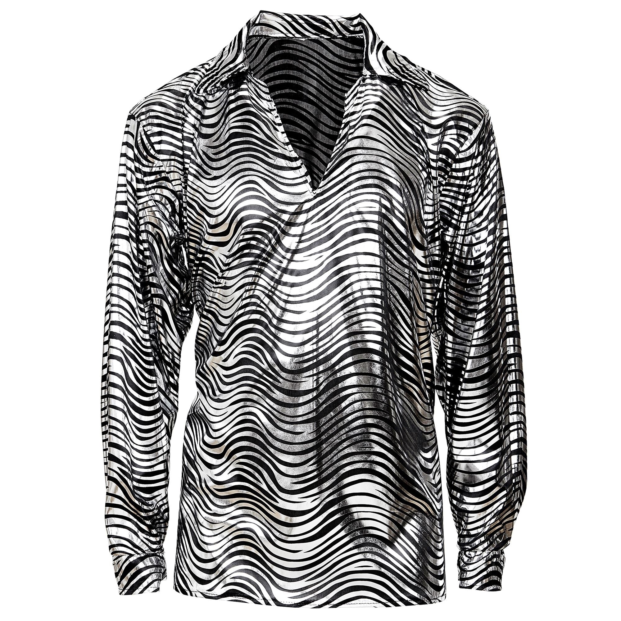 Disco 70S Shirt Zilver Heren Tijgerprint