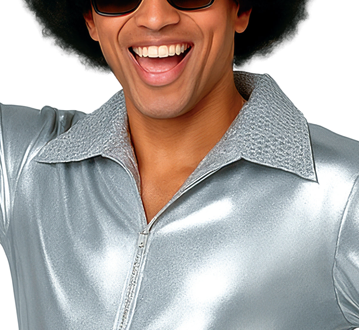 Ga helemaal terug naar de discojaren met dit opvallende zilveren disco pak voor heren. De glanzende uitstraling maakt deze jumpsuit perfect voor themafeesten, carnaval of een foute party.