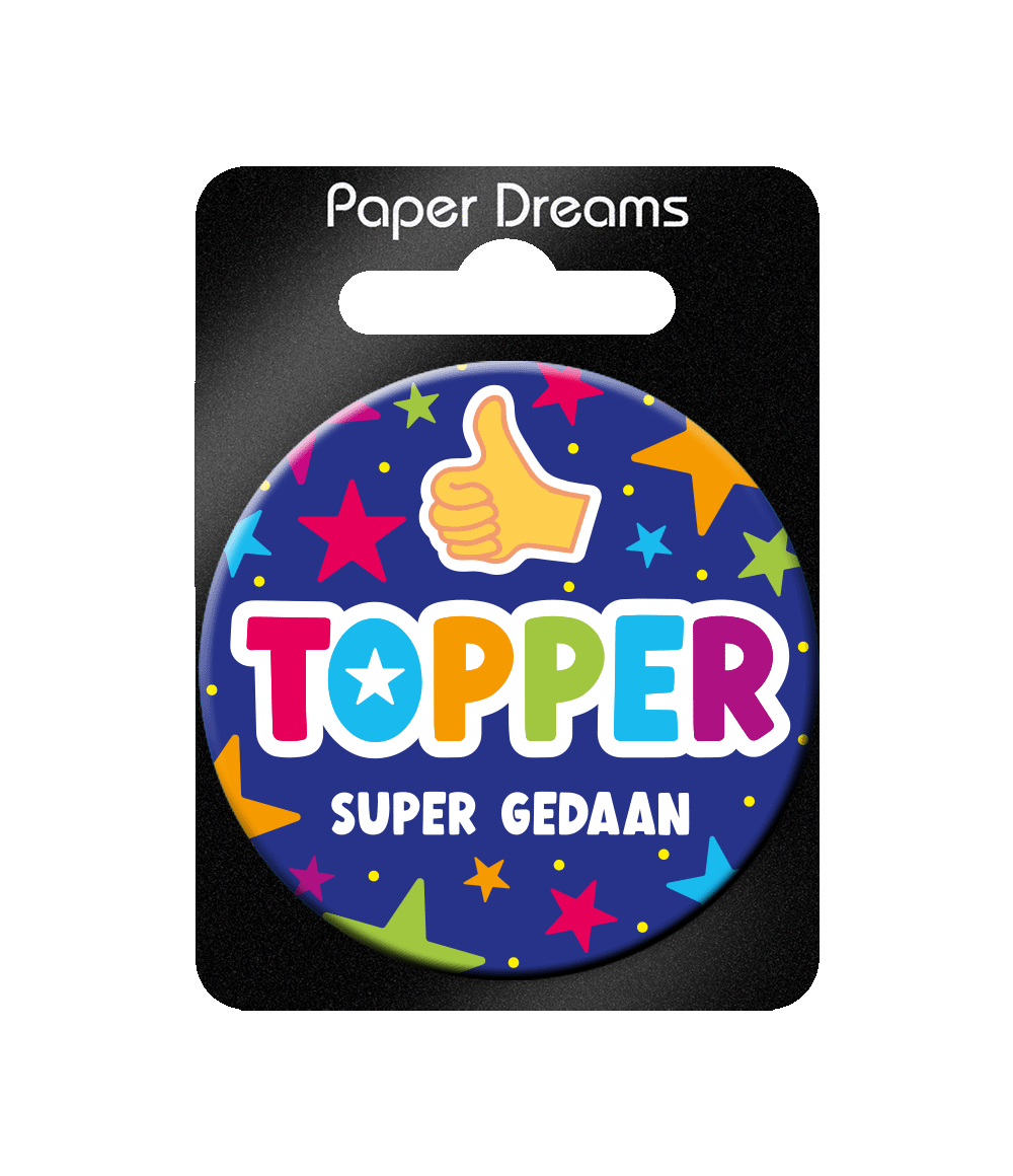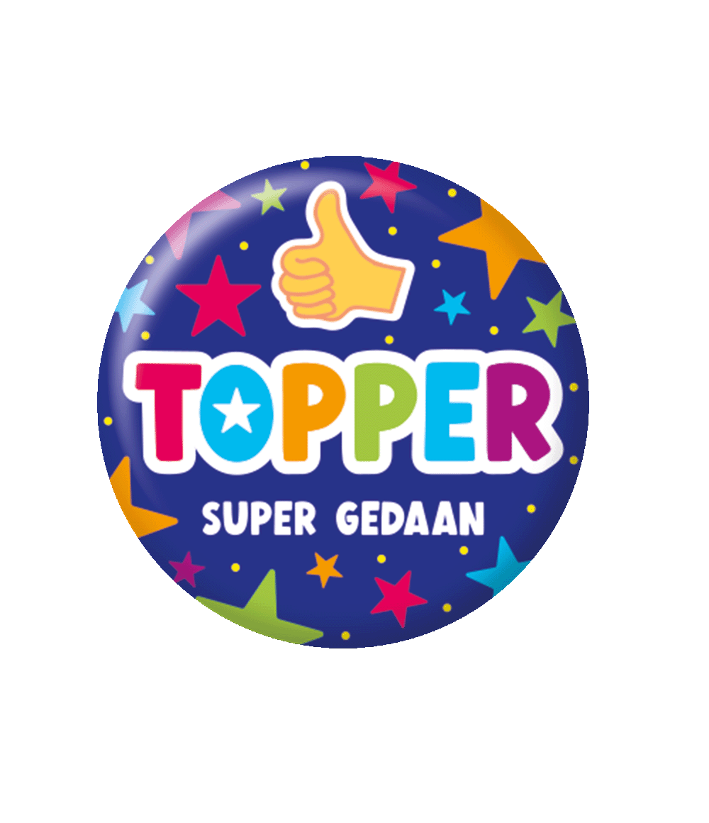 Deze feestelijke kleine button Topper is leuk om op te spelden bij iemand waar je trots op bent of die een belangrijke prestatie heeft neergezet. Button klein - topper is gemaakt van metaal.