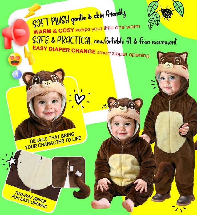 Laat kinderen vrolijk rondrennen in dit schattige eekhoorn kostuum van zacht pluche fluweel. Het comfortabele materiaal en het speelse ontwerp maken dit kostuum perfect voor elk verkleedmoment.