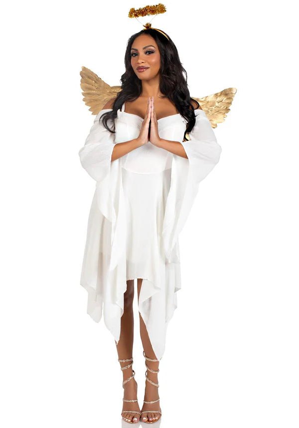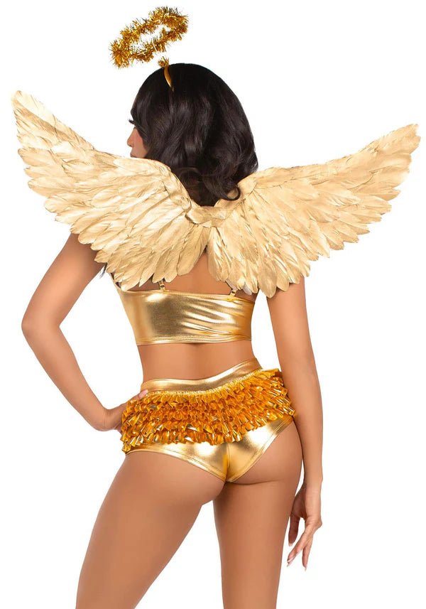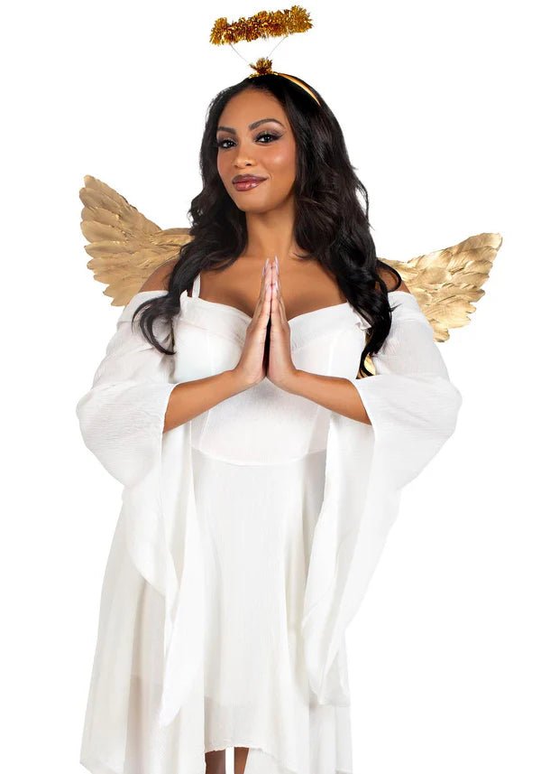 🔥 Transformeer jezelf in een engelachtig visioen met de Metallic Angel Wings en Tinsel Halo Headband set! 👼✨