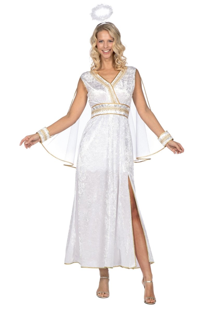 Straal pure elegantie uit met deze lange witte engelenjurk. Perfect voor kerstvoorstellingen, themafeesten of verkleedpartijen.