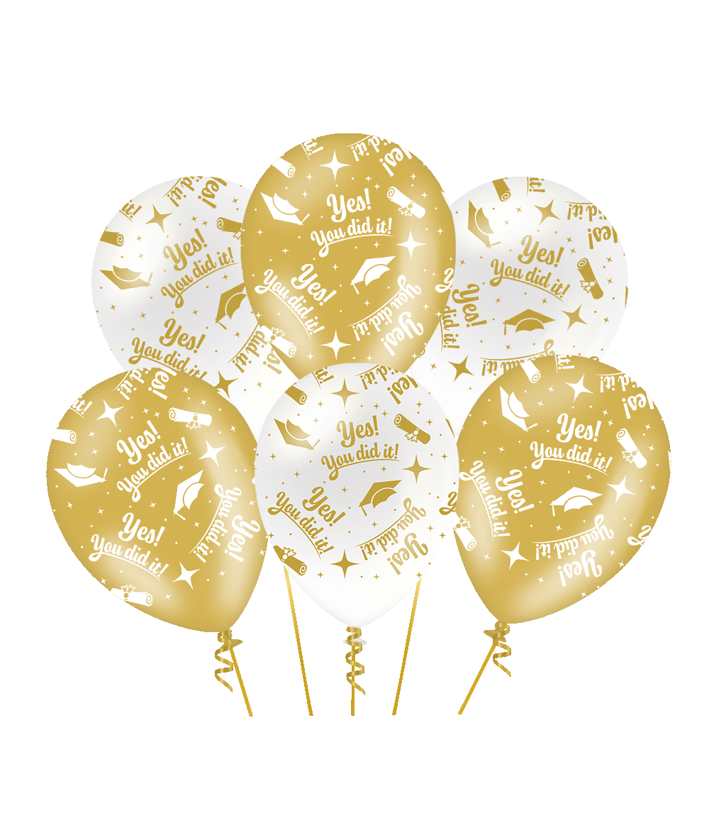 De Fancy Party balloons – You did it van Paper Dreams geven elke geslaagdenviering een luxe en feestelijke uitstraling. De goud-witte ballonnen met de tekst “You did it” zijn gemaakt van hoogwaardig latex en trekken direct de aandacht dankzij hun stijlvolle look.