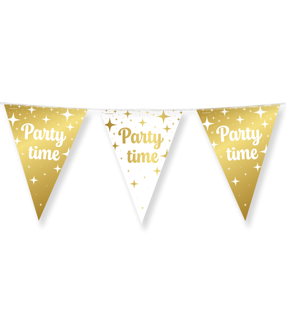 De Fancy Party Flags foil - Party time laat zich uitstekend combineren met onze bijpassende ballonnen én met andere feestartikelen uit ons ruime assortiment, zodat je moeiteloos een feestelijke en stijlvolle sfeer creëert.