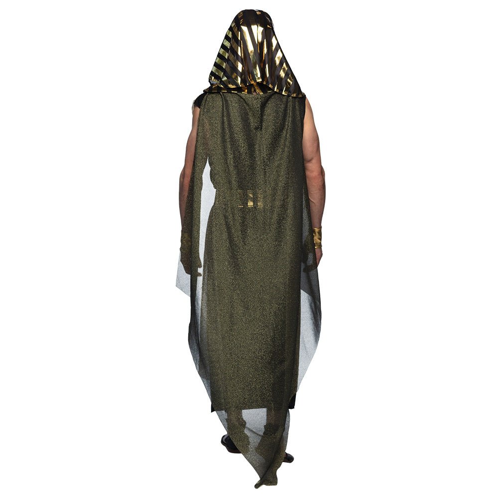Dit complete farao kostuum voor mannen, compleet met gouden details, brengt de grandeur van het oude Egypte tot leven. Het volwassenenkostuum in maat 50/52 bestaat uit een hoofdtooi, cape, gewaad, riem en armbanden. Een aanrader voor carnaval, Halloween of een themafeest.