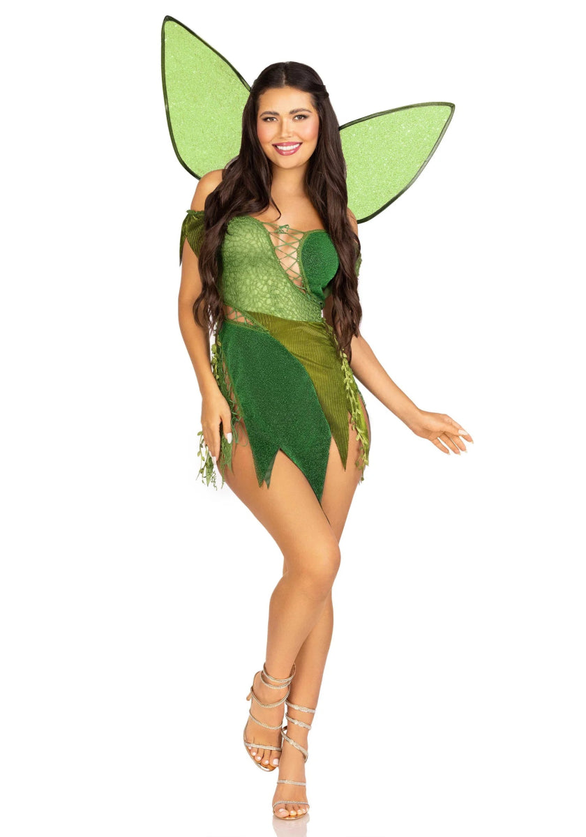 Stap in de schijnwerpers en laat je innerlijke tovenares stralen in het Bosfee kostuum van Leg Avenue! Dit betoverende 3-delige ensemble bestaat uit een prachtige patchwork jurk met verstelbare veters en een rok versierd met bladaccenten. De afneembare transparante bandjes en glinsterende feeënvleugels voegen een extra vleugje magie en veelzijdigheid toe. Perfect voor Halloween, carnaval of een themafeest waar je je betoverende bosfee-look wilt laten schitteren! 🌿🦋