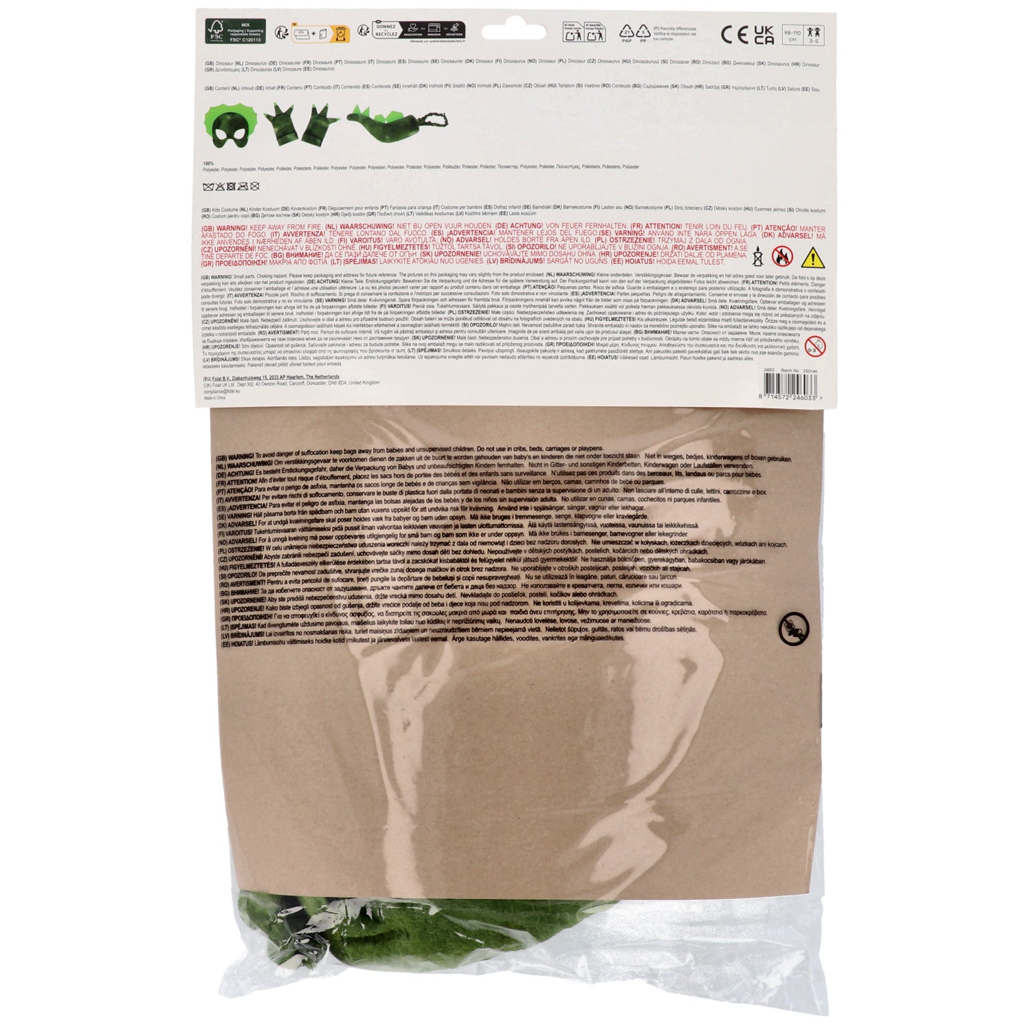 Raaawrr! Met deze Dino Verkleedset waant ieder kind zich meteen in het prehistorische tijdperk. Ideaal voor kinderfeestjes, themafeestjes of carnaval. De complete set bestaat uit vier delen en zorgt voor een stoere dinosauruslook van top tot teen.