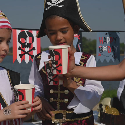 Laat ieder kind avonturen beleven op hoge zeeën met dit stoere piratenpak. Verkrijgbaar in twee maten: 98-110 cm (3-5 jaar) en 116-128 cm (6-8 jaar).