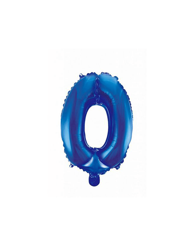Folie Ballon Cijfer 0 Blauw 41cm met Rietje