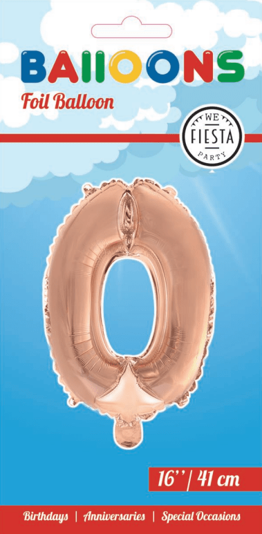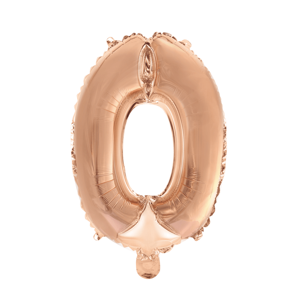 Folie Ballon Cijfer 0 Rose Goud 41cm met Rietje