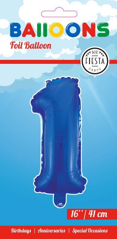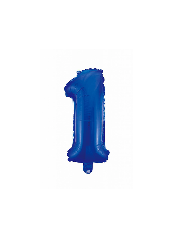 Folie Ballon Cijfer 1 Blauw 41cm met Rietje