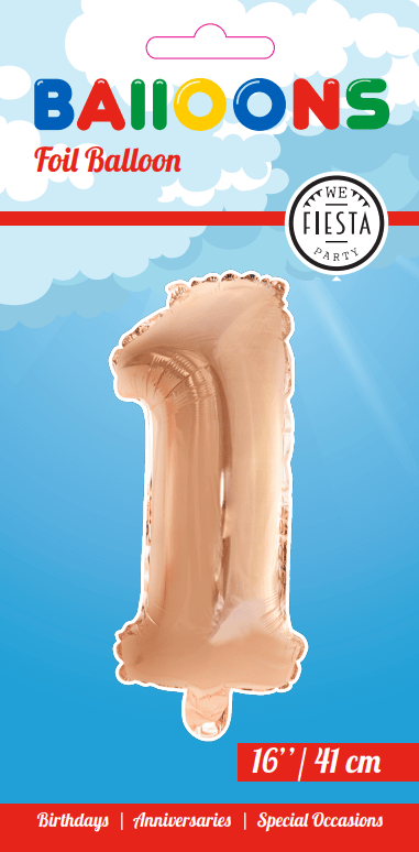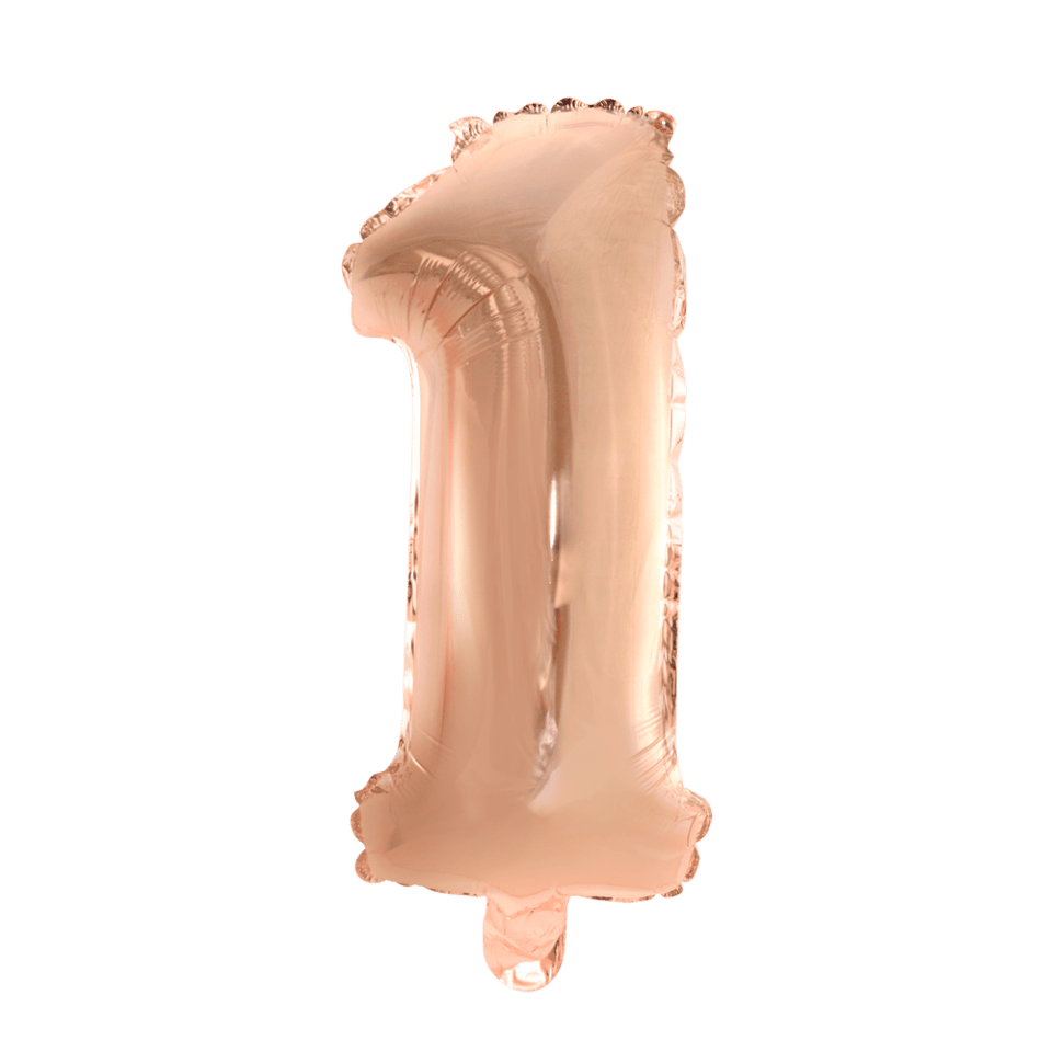 Folie Ballon Cijfer 1 Rose Goud 41cm met Rietje