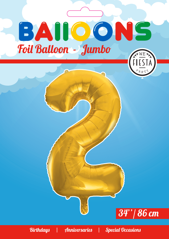 Folie Ballon Cijfer 2 Goud XL 86cm leeg