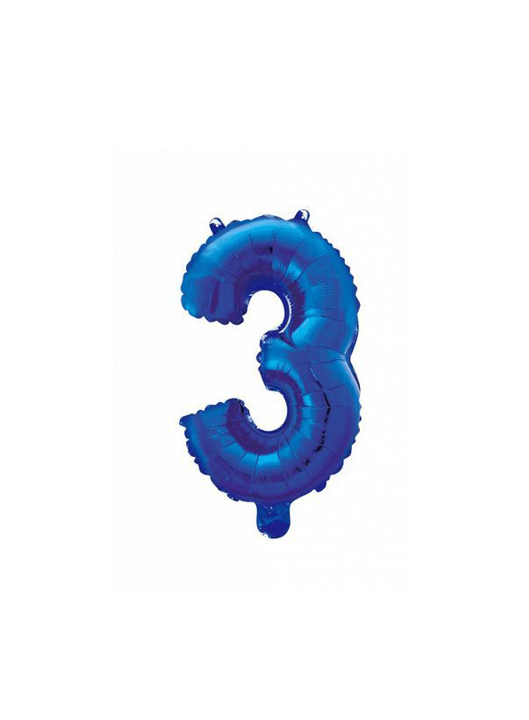 Folie Ballon Cijfer 3 Blauw 41cm met Rietje