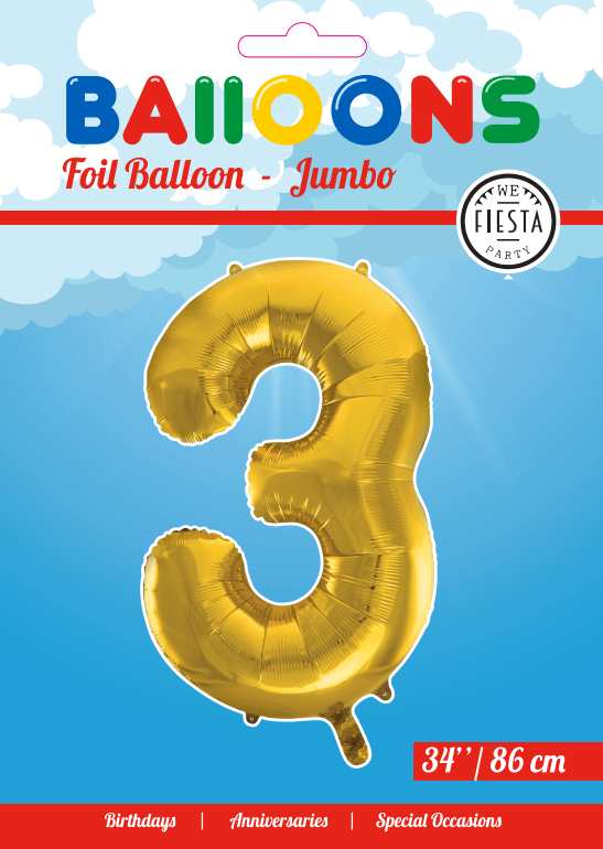 Folie Ballon Cijfer 3 Goud XL 86cm leeg
