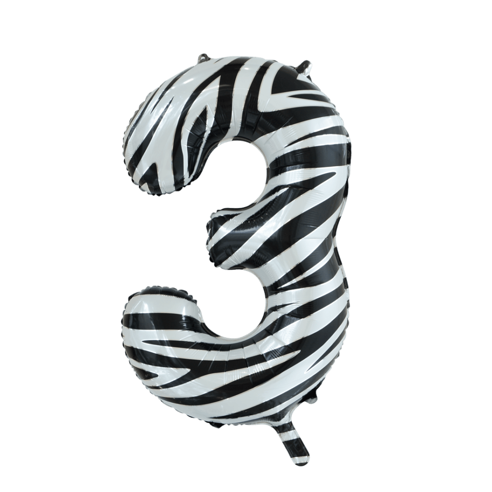 Folie Ballon Cijfer 3 Zebra XL 86cm leeg