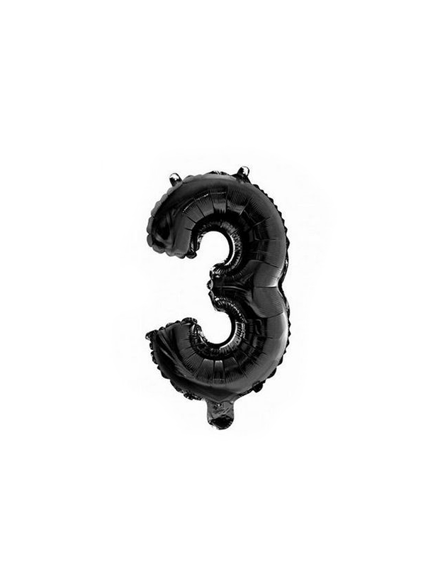 Folie Ballon Cijfer 3 Zwart 41cm met Rietje