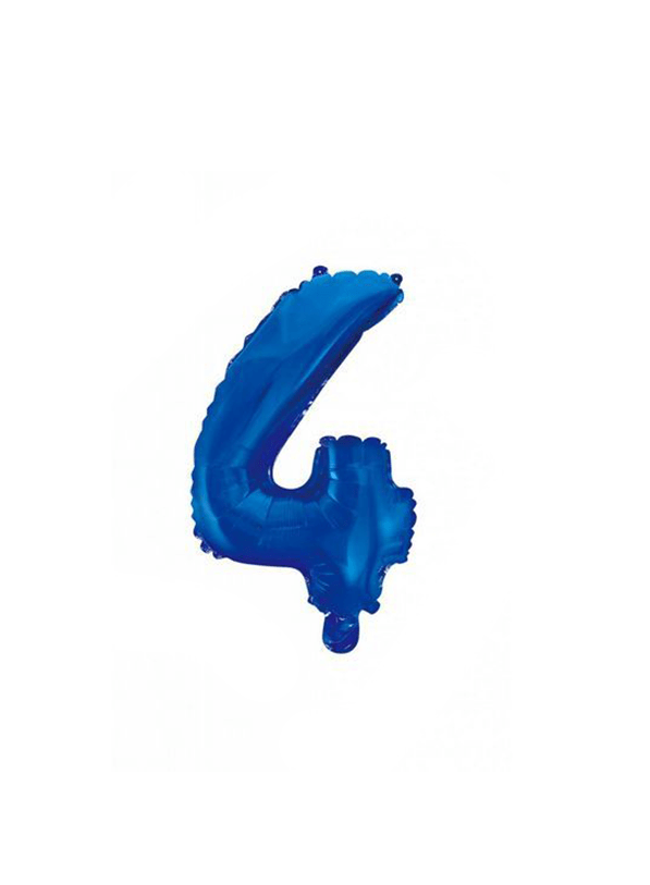 Folie Ballon Cijfer 4 Blauw 41cm met Rietje