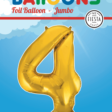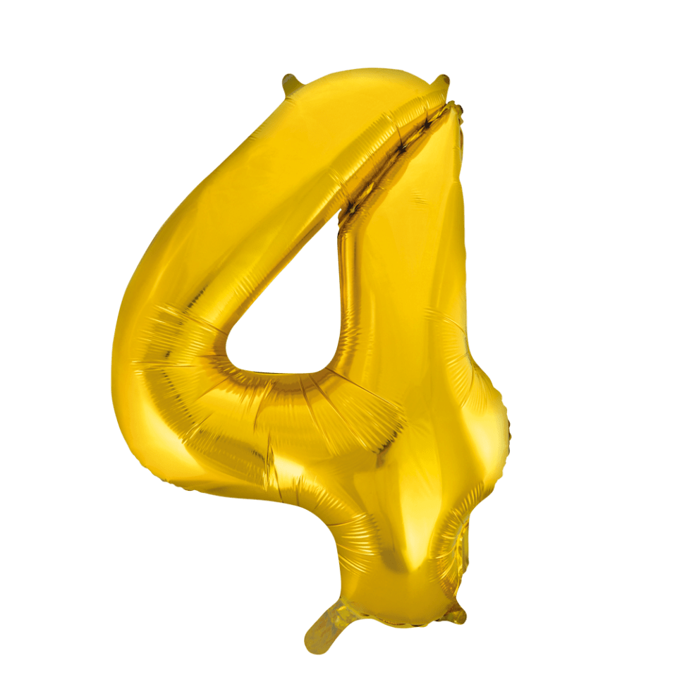 Folie Ballon Cijfer 4 Goud XL 86cm leeg