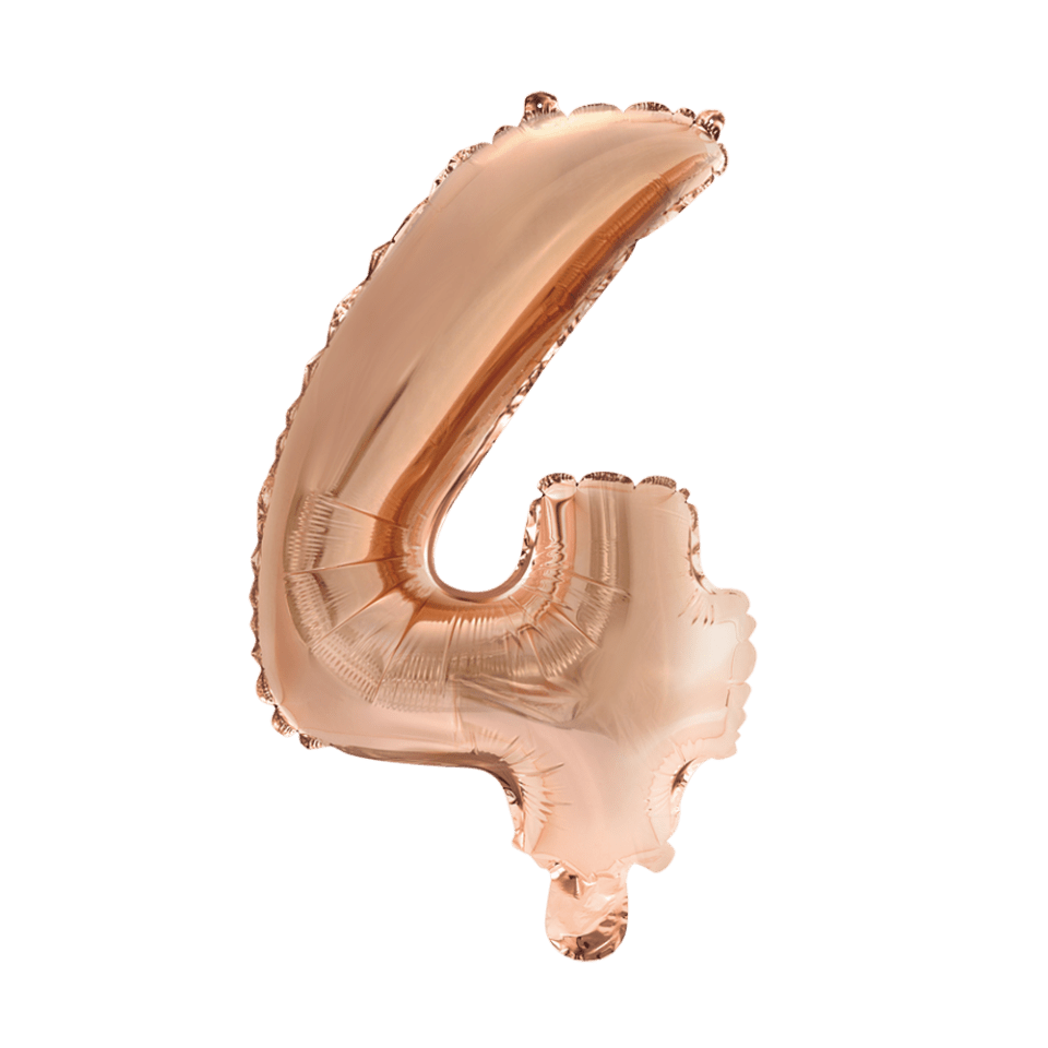 Folie Ballon Cijfer 4 Rose Goud 41cm met Rietje