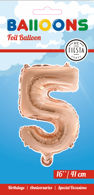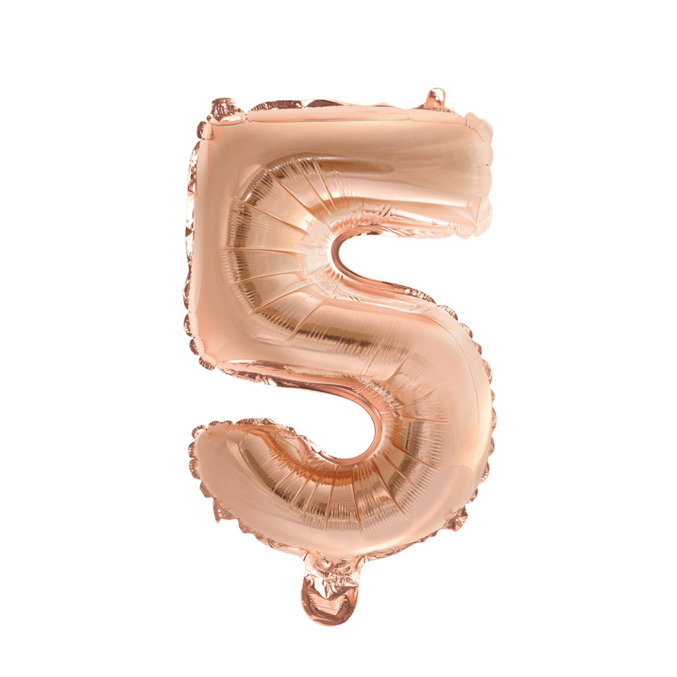 Folie Ballon Cijfer 5 Rose Goud 41cm met Rietje