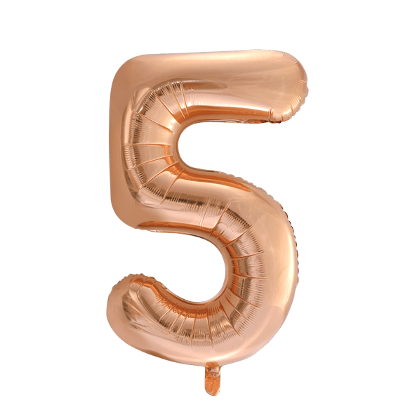 Folie Ballon Cijfer 5 Rose Goud XL 86cm leeg