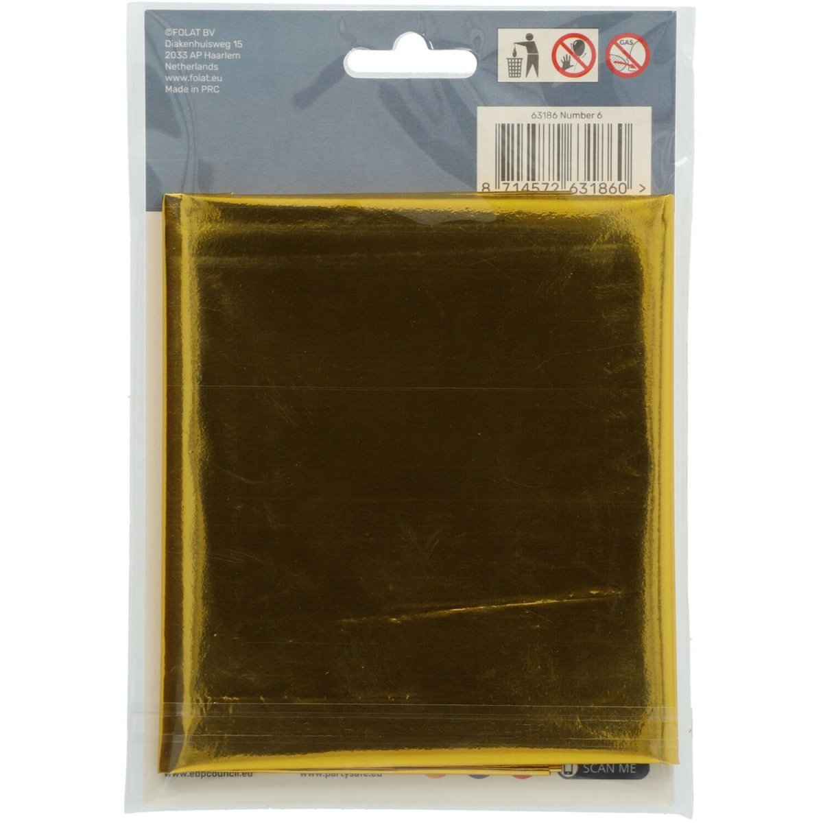 Folie Ballon Cijfer 6 Goud Metallic XL 86cm leeg