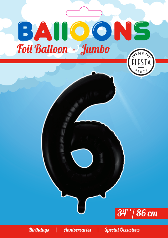 Folie Ballon Cijfer 6 Zwart XL 86cm leeg