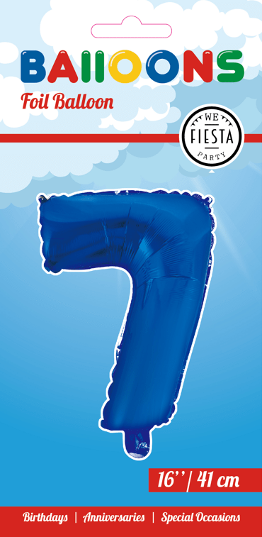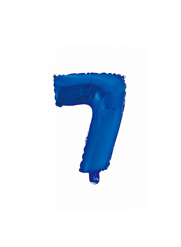 Folie Ballon Cijfer 7 Blauw 41cm met Rietje