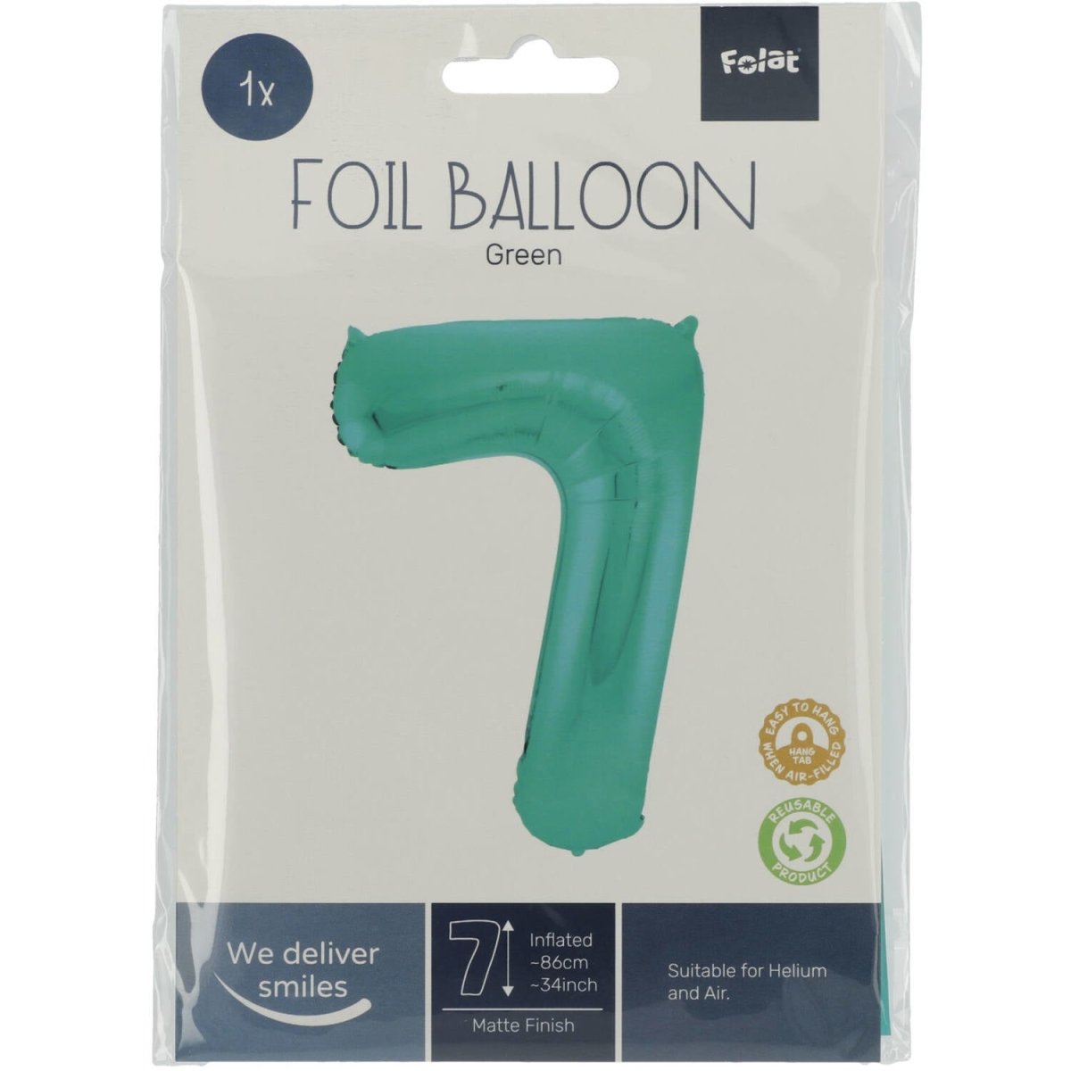 Folie Ballon Cijfer 7 Mat Groen XL 86cm leeg