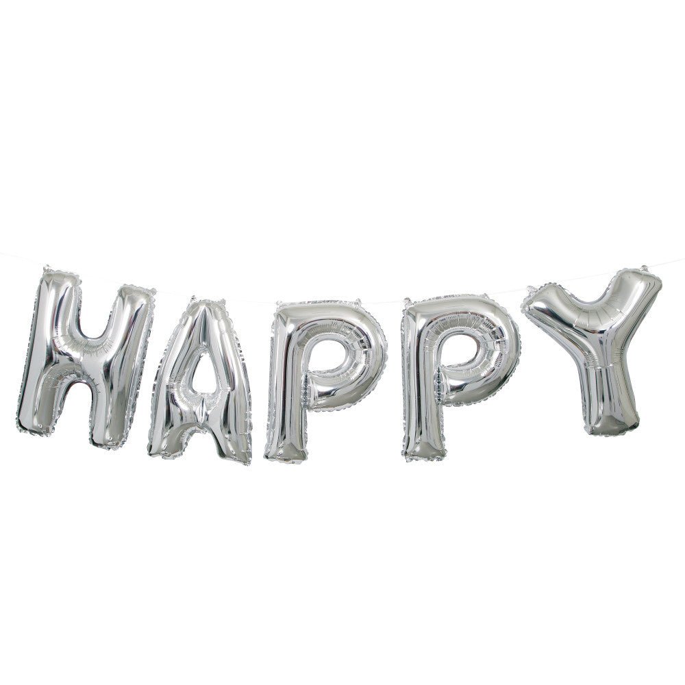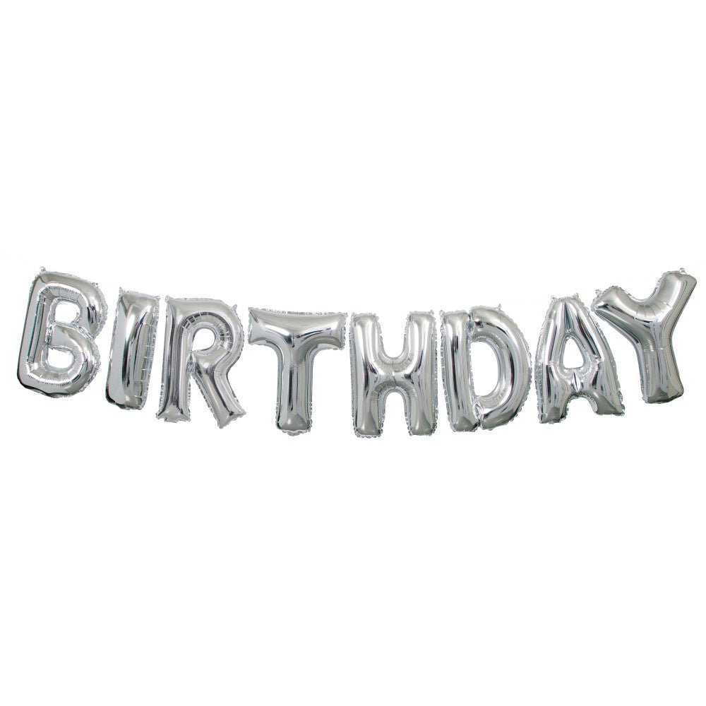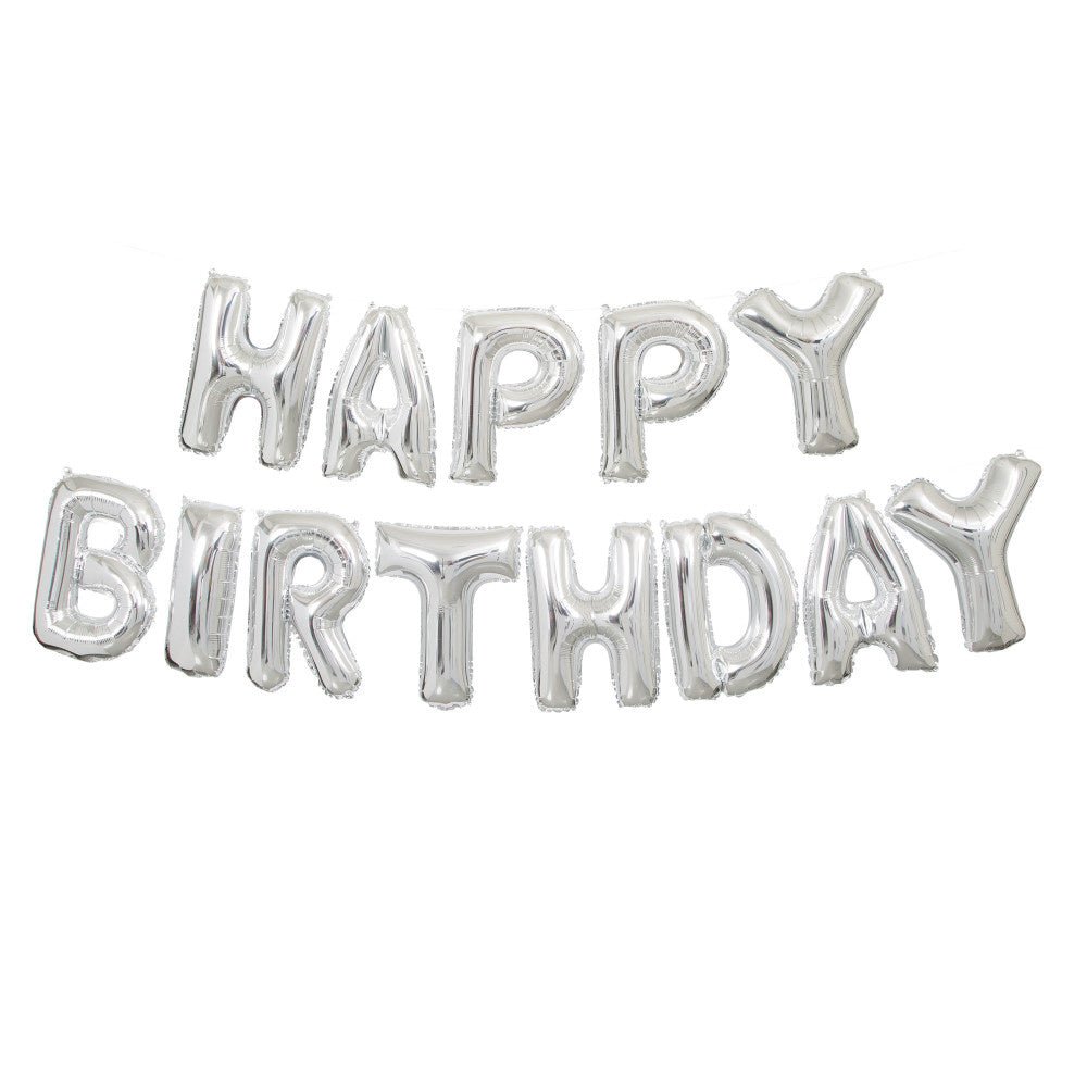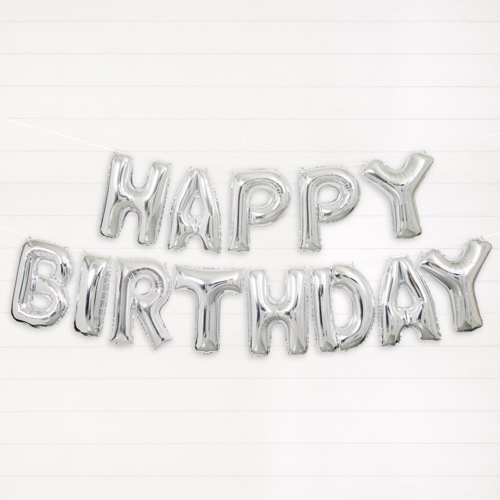 Folie Ballon Happy Birthday Zilver Leeg 4,31m