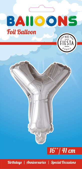 Folie Ballon Letter Y Zilver 41cm met Rietje
