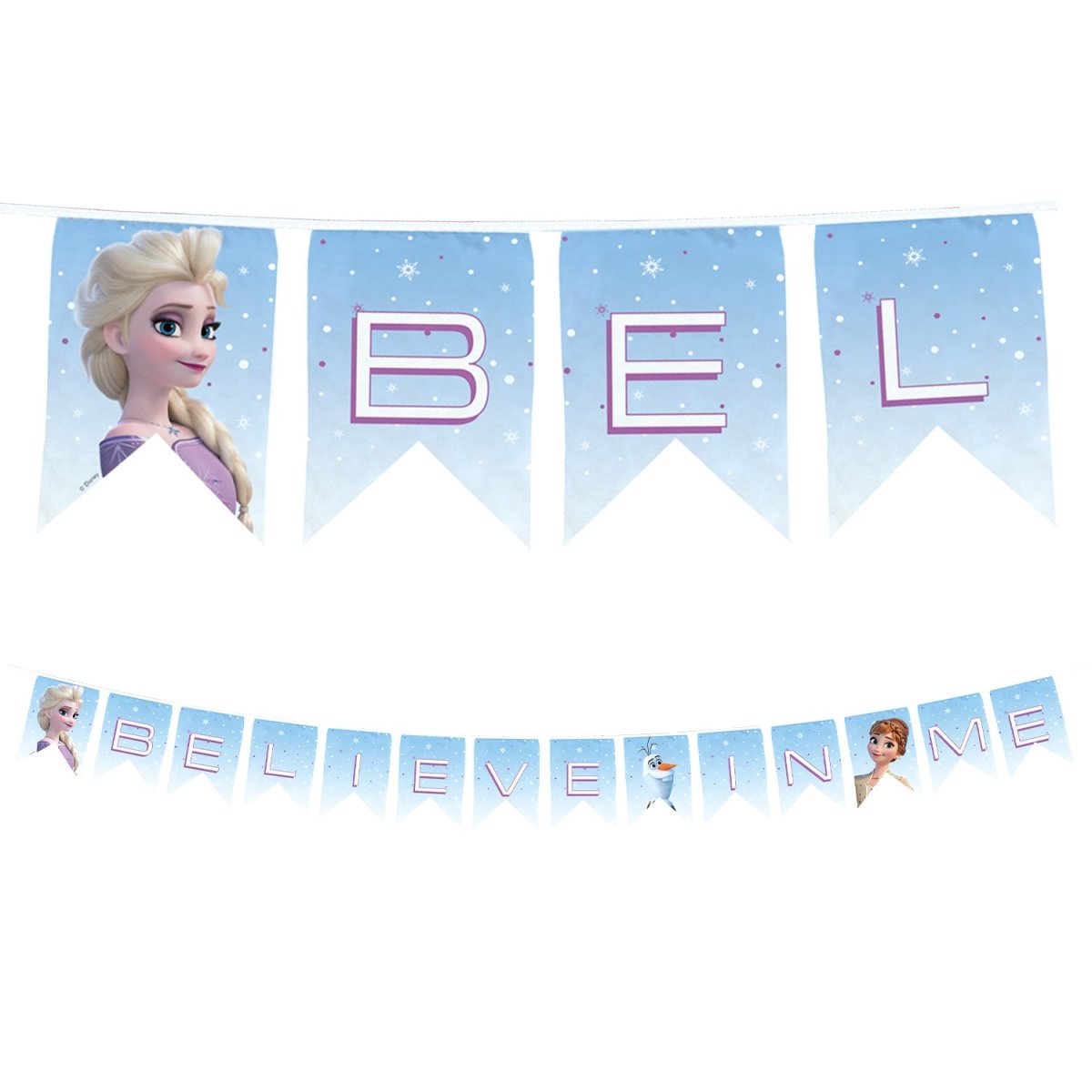 Deze Frozen letterslinger is de perfecte decoratie voor elke Frozen-fan. Met de prachtige blauwe tinten en speelse vormgeving brengt de slinger meteen de magische sfeer van Arendelle in huis. Ideaal voor verjaardagen, themafeestjes of winterse vieringen.