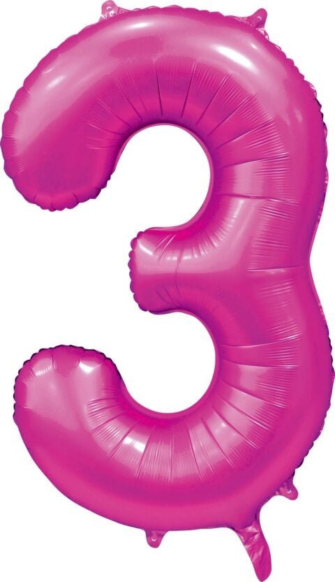Fuchsia Cijfer Ballon 3 Jaar Glans 86cm