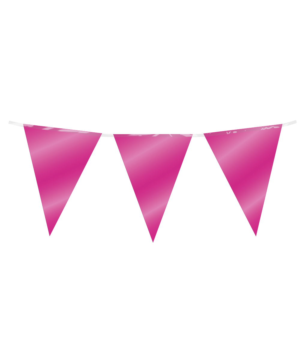 Met de party flags foil - fuchsia uit de Basic collectie van Paper Dreams haal je een kwalitatieve fuchsiakleurige vlaggenlijn in huis voor een scherpe prijs. De vlaggenlijn is 10 meter lang en de besteleenheid is 6. De vlaggetjes zijn gemaakt van folie en kunnen dus meerdere feestjes mee. Binnen deze collectie vind je naast fuchsia vlaggetjes nog veel meer vlaggenlijnen in diverse kleuren en ook ballonnen, (grote) folieballonnen en party curtains in dezelfde kleur.