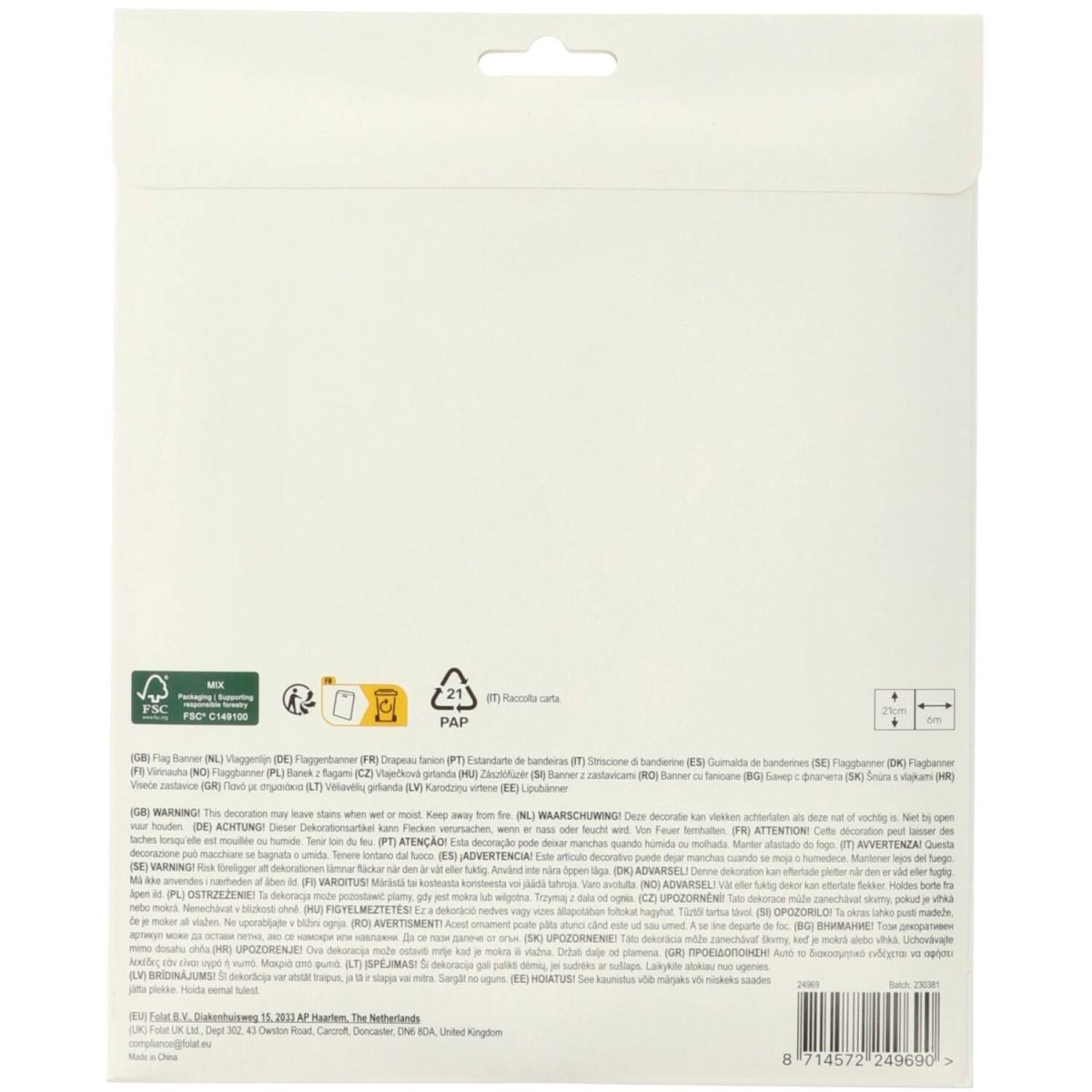Voor de gamers. Vlaggenlijn - Level Up - 6 meter. Inhoud: 1 vlaggenlijn. Bijvoorbeeld te gebruiken tijdens de volgende feestgelegenheid/feestgelegenheden: Verjaardag, Kinderfeestje, Tienerfeestje. Deze vlaggenlijn creëert direct een gamesfeer. Perfect voor verjaardagsfeesten met het thema 'Gamen'. De vlaggen hebben afwisselend een afgeronde en puntige vorm. Op de zwarte afgeronde vlaggen staan teksten als Level Up, Let's Go en Happy Birthday. Op de zilveren puntige vlaggen staat het Level Up symbool. De vlaggen kunnen heen en weer over het witte lint geschoven worden. Deze vlaggenlijn hoort bij onze Level Up collectie. Een gave collectie met zilveren accenten waarmee je een echt gamefeest kunt vieren. Gemaakt door een gamer voor gamers. Let's go! Dit artikel is gemaakt van FSC papier.