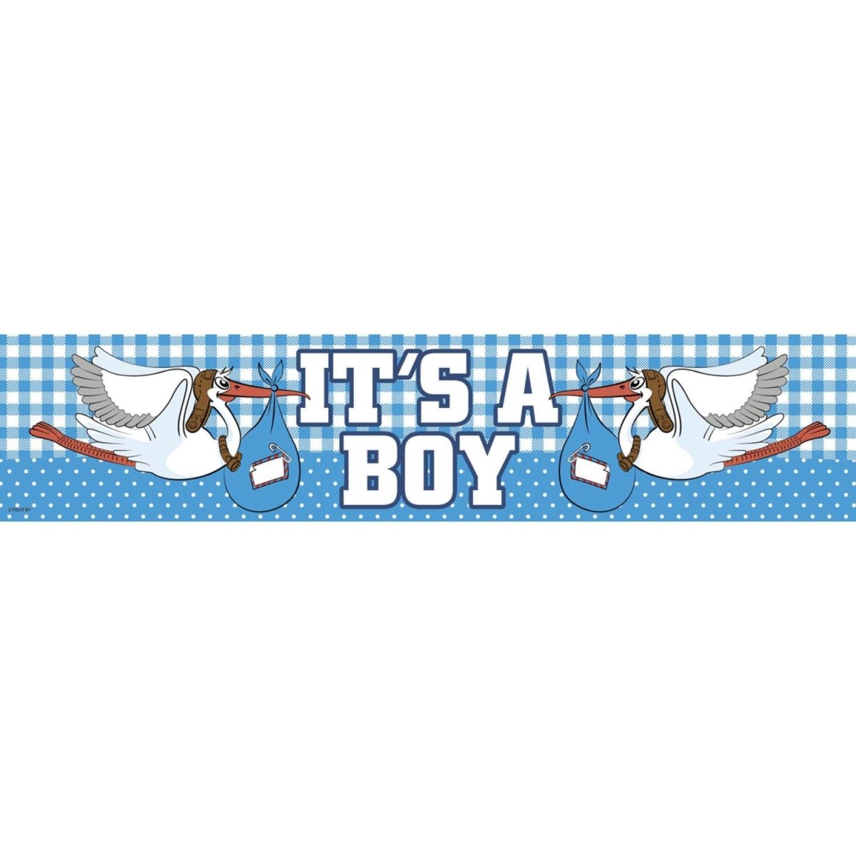 Geboorte Jongen Foliebanier - 2,5 mtr x 11cm. Inhoud: 1 banier. Kleur: Blauw. Bijvoorbeeld te gebruiken tijdens de volgende feestgelegenheid/feestgelegenheden: Themafeest, Geboorte Jongen. Afmetingen van dit artikel: 2,5 meter x 11 cm. Dit artikel is gemaakt van folie.