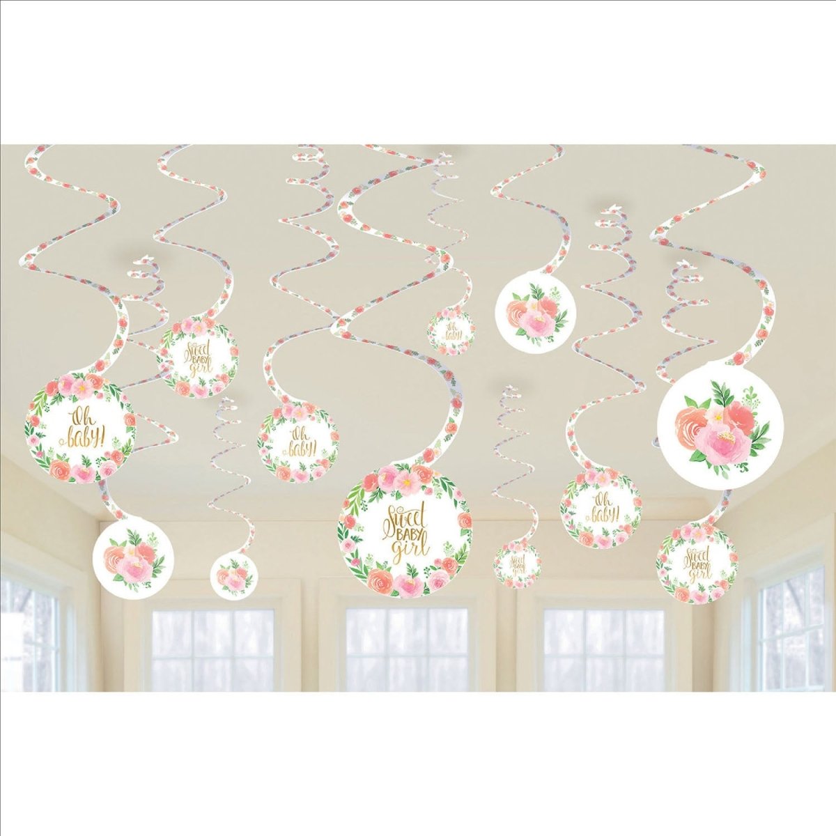 Geboorte Hangdecoratie Meisje Bloemen 61cm 12st